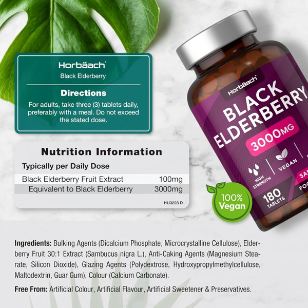 Searching for a natural way to support your immune system? Our Black Elderberry Extract delivers a potent 3000mg equivalent of Sambucus nigra in each daily serving, providing you with nature’s defense in a convenient tablet form.
