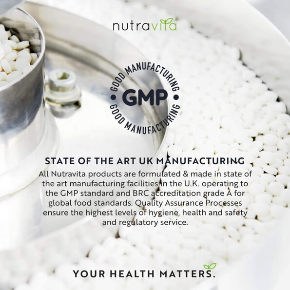 Nutravita has been a trusted brand in vitamins and supplements since 2014, serving thousands of customers worldwide. We manufacture, batch-test, and certify our high-quality products in the UK, adhering to the highest manufacturing standards (GMP, BRC). Our dedicated team of pharmacologists, chemists, and research scientists sources the finest and most beneficial ingredients.