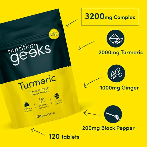 Firstly, curcumin is the primary beneficial active compound in turmeric. While many competitors offer turmeric powder capsules with only around 3% curcumin, our tablets contain a 95% high-strength extract. Each daily serving (2 tablets) provides the equivalent of 2000mg of the highest quality turmeric (35:1 Extract).