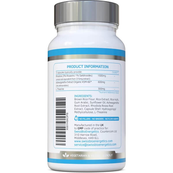 - Standardised extracts (KSM-66 Ashwagandha and Rhodiola with verified Rosavins)