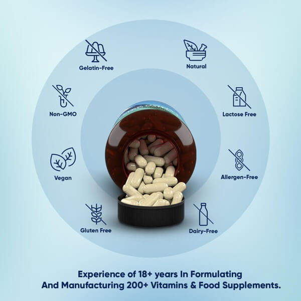 - Vegetarian capsule shell: Hypromellose (HPMC)